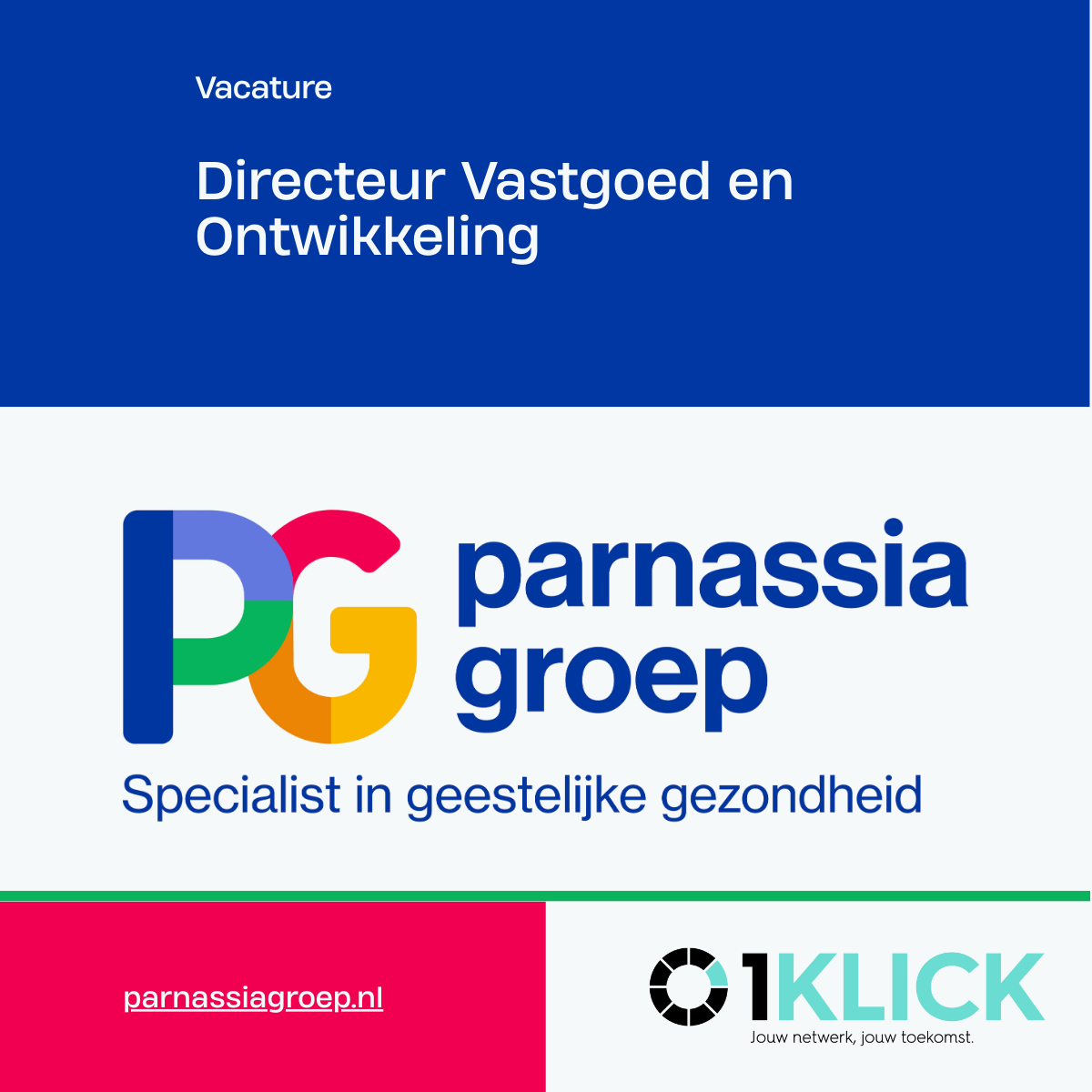 Parnassia Groep, de grootste GGZ-instelling van Nederland, zoekt via 1KLICK Recruitment een daadkrachtige en visionaire directeur Vastgoed & Ontwikkeling die strategisch richting gaat geven aan de vastgoedportefeuille voor de zorg van morgen.